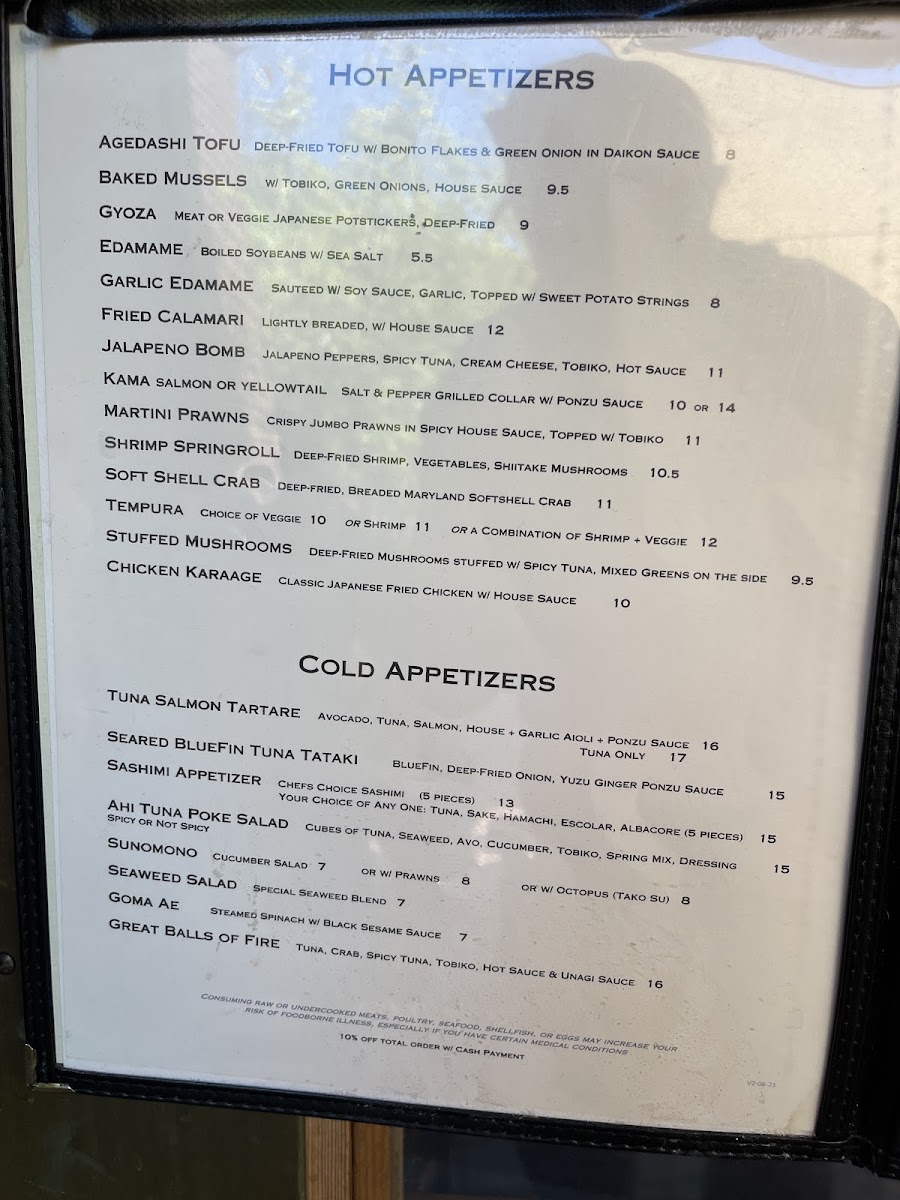 New! You're choosing a roll of both shadow and substance. You've just crossed over into the... In: spicy crab, spicy tuna, cream cheese, shiitake mushroom, avocado, then deep-fried. Outside: tobiko, furikake, spicy mayo, wasabi mayo, hot sauce, unagi sauce.